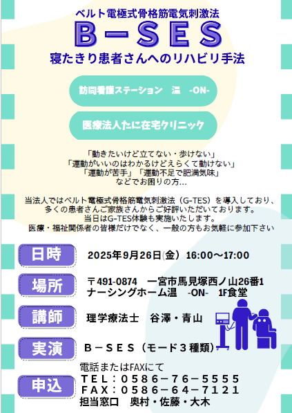 訪問看護ステーション 温 -on- B-SES ベルト電極式骨格筋電気刺激法 体験会